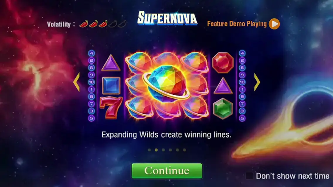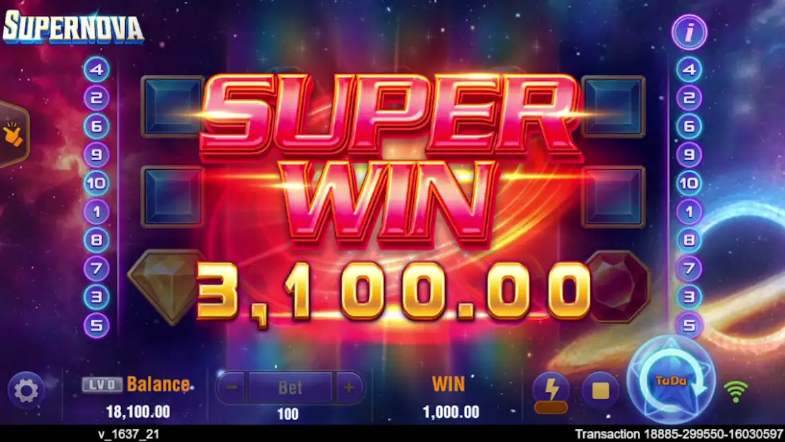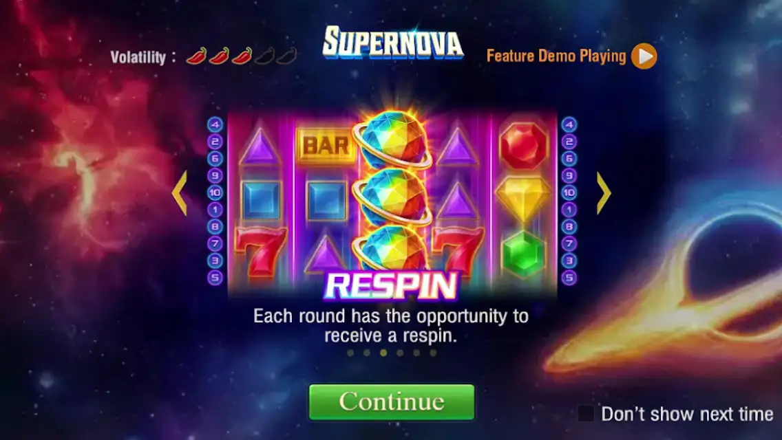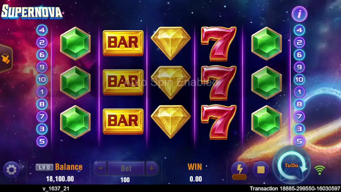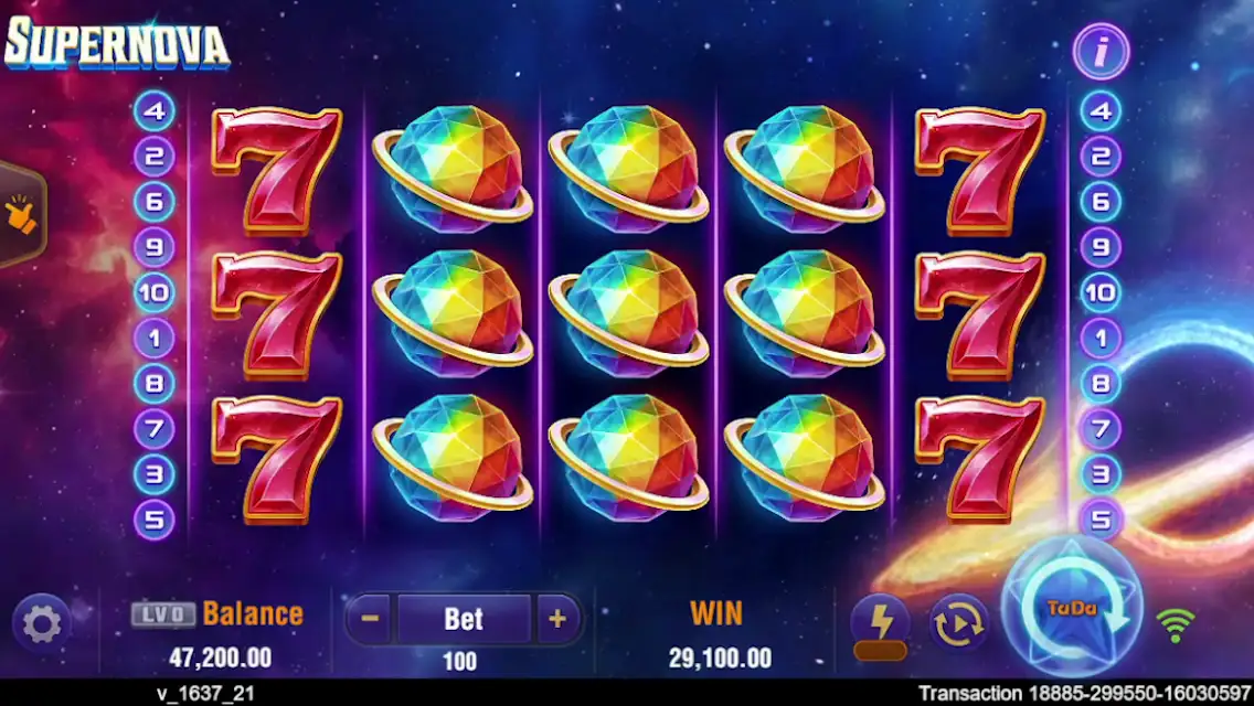 In the depths of the galaxy, gem-like energy shines with the reels. When the supernova WILD erupts, it not only lights up the sky but also triggers respins, amplifying win multipliers! Each spin could bring a lucky moment, awarding unimaginable cosmic riches.